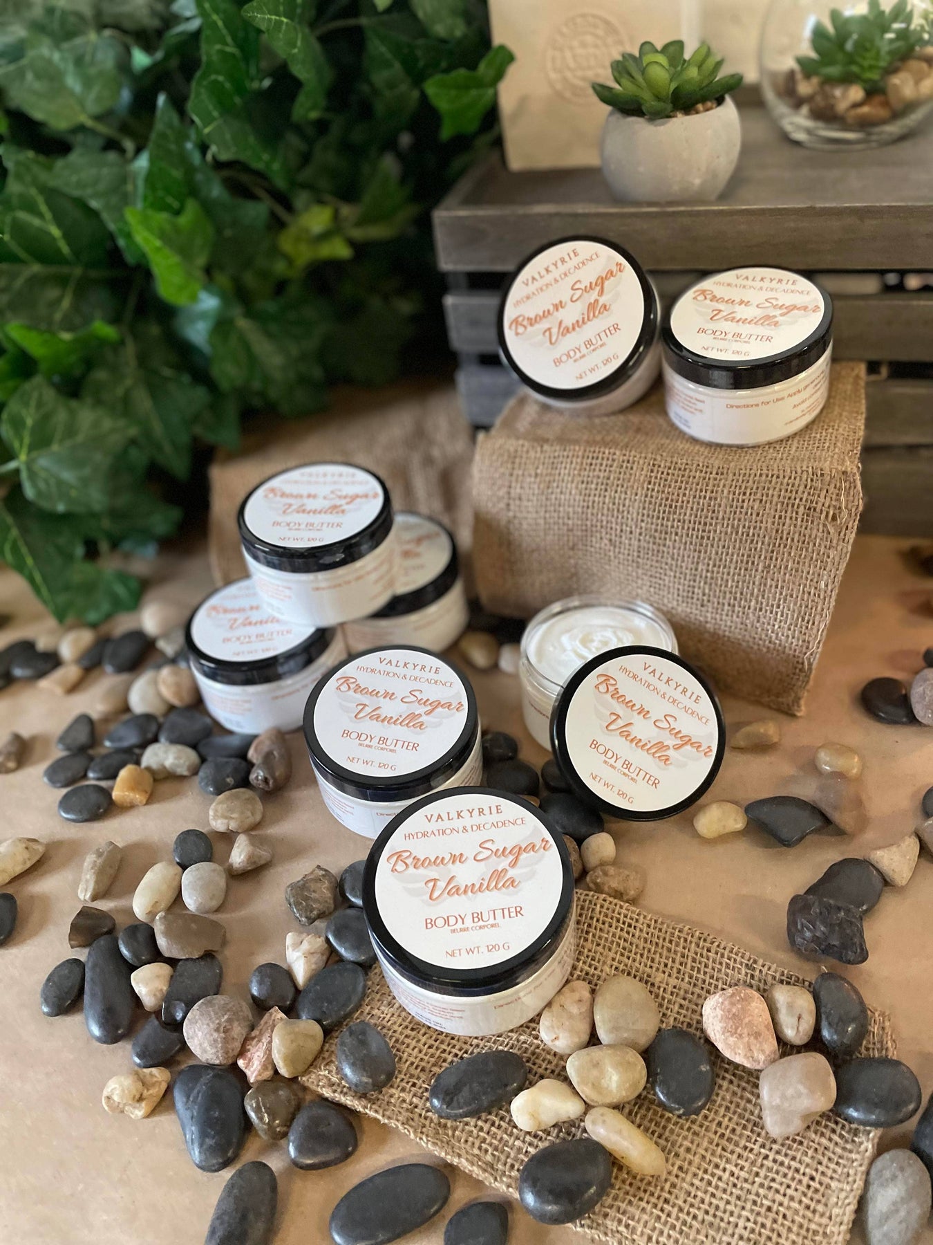 Pamper your skin and delight your senses with this rich and moisturizing brown sugar vanilla body butter. It's silky, creamy texture spreads easily, wrapping you in a sumptuous buttered hug. This deliciously indulgent body butter is the ideal treat for your skin and a fun essential for your self-care ritual!