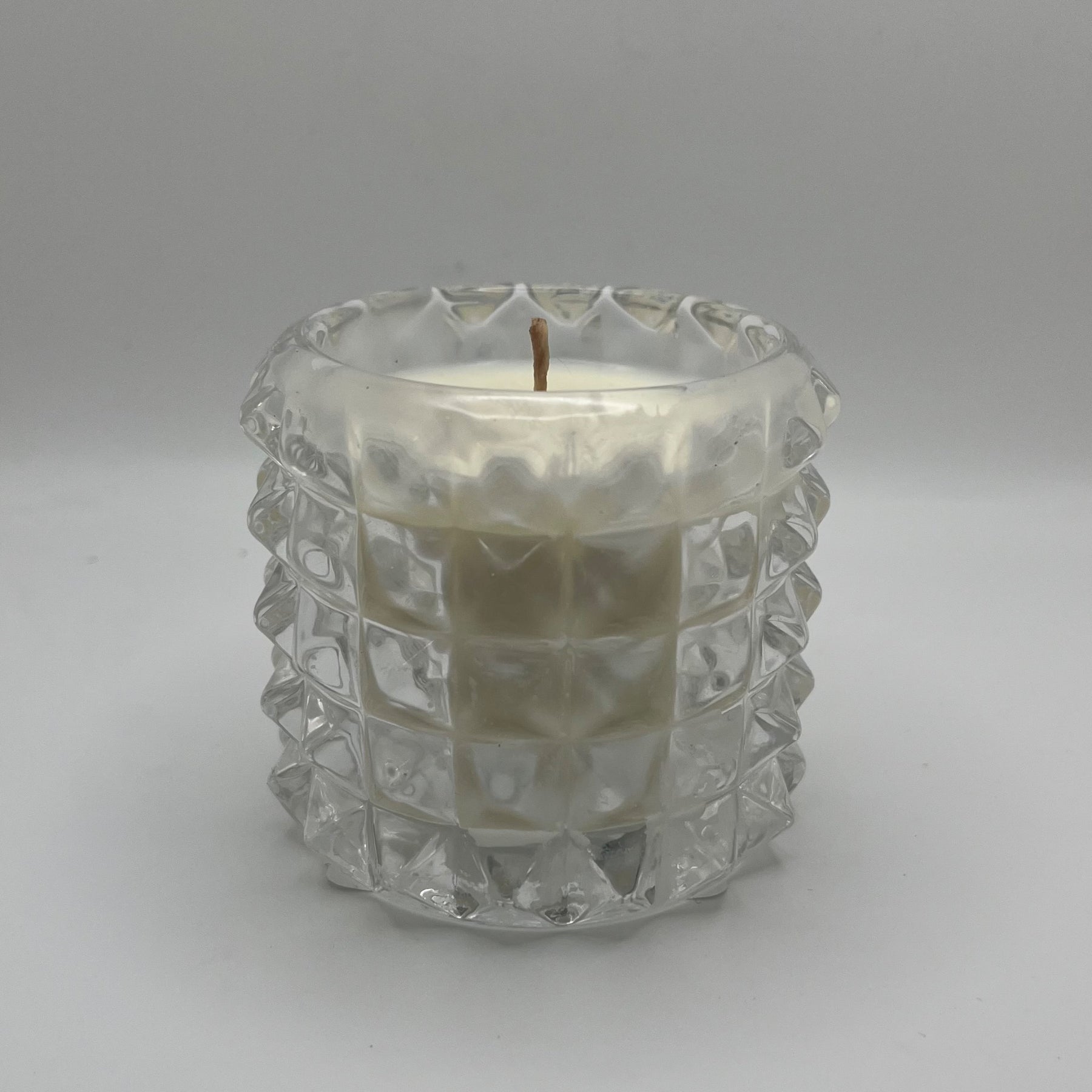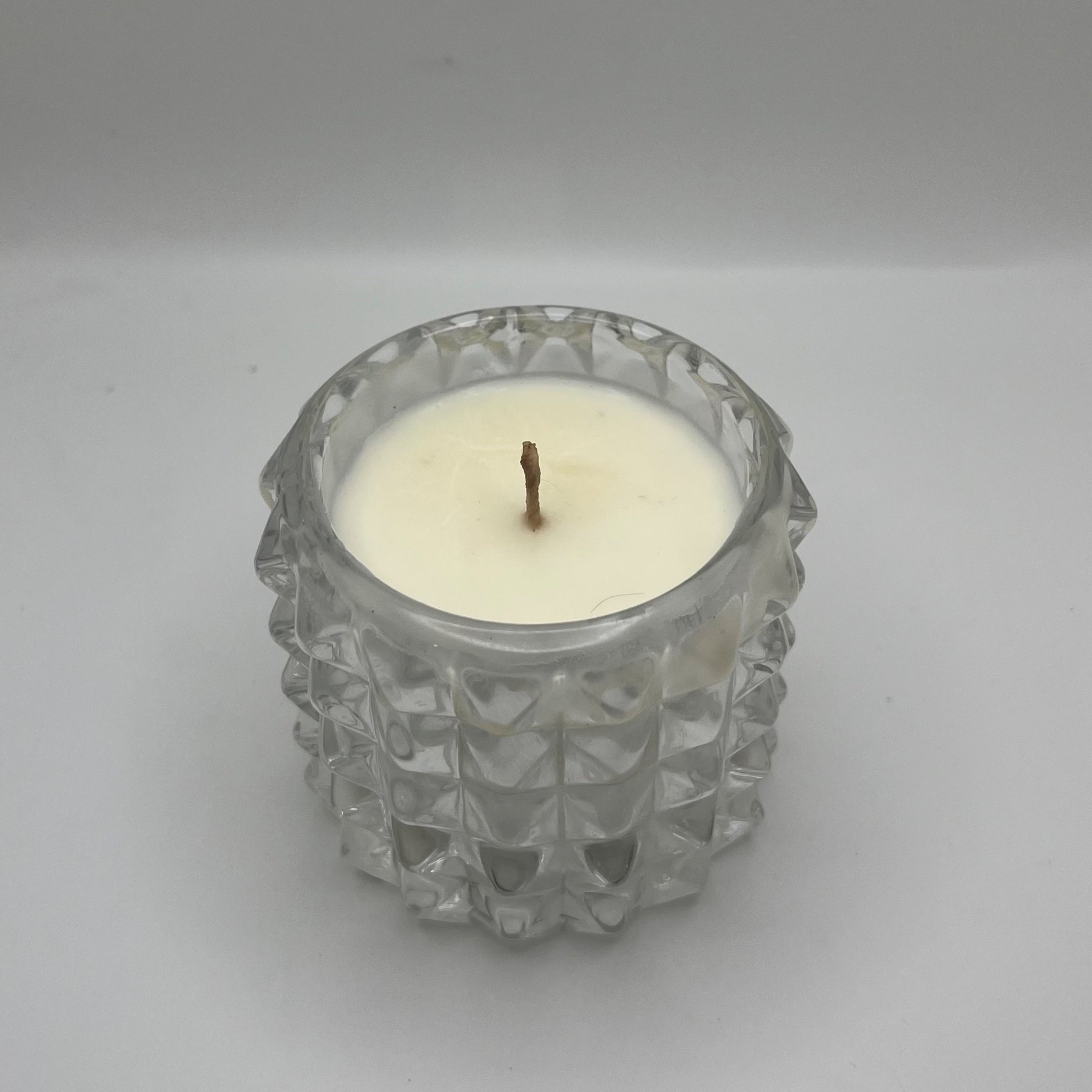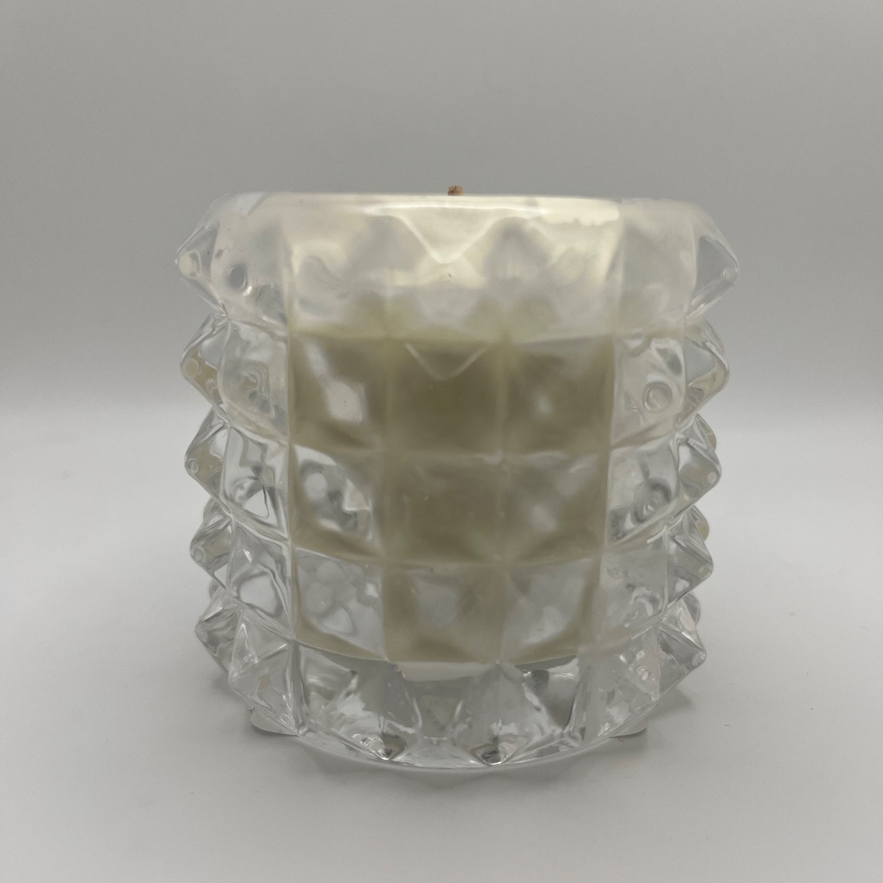 Crystal dish upcycled into a Christmas Pine scented candle.