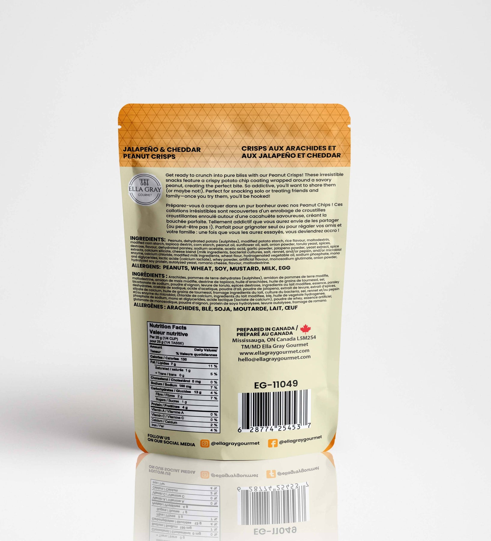 Buckle up for flavor overload! Jalapeno + Cheddar peanut crisps are the snack that refuses to play it safe. Roasted peanuts get the crispy potato chip treatment, then get dressed up in bold jalapeno heat and rich cheddar flavour. The result? A crunchy, tangy, cheesy sensation that hits all the right notes.