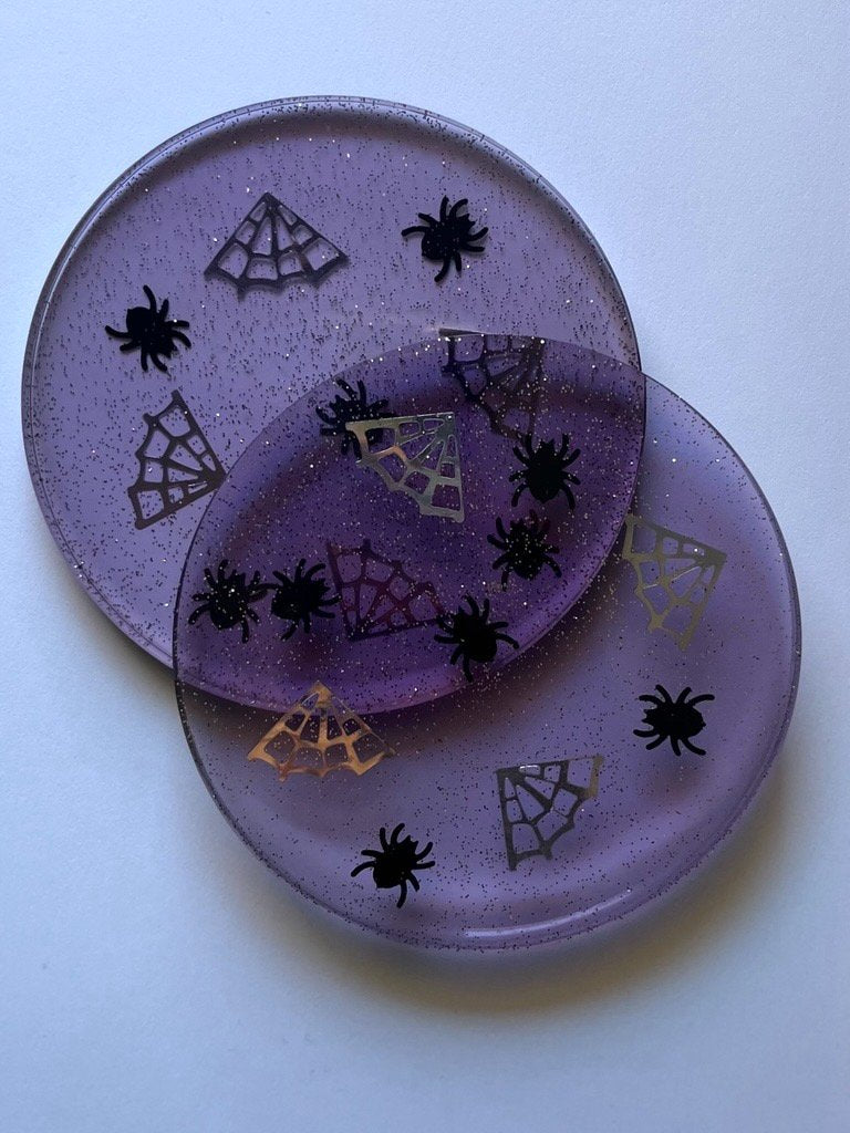 Gorgeous resin Halloween themed coasters. Sold as a pair.